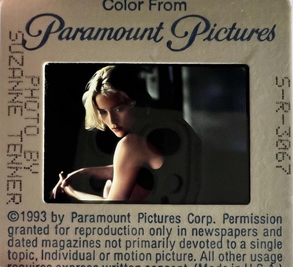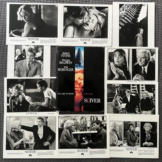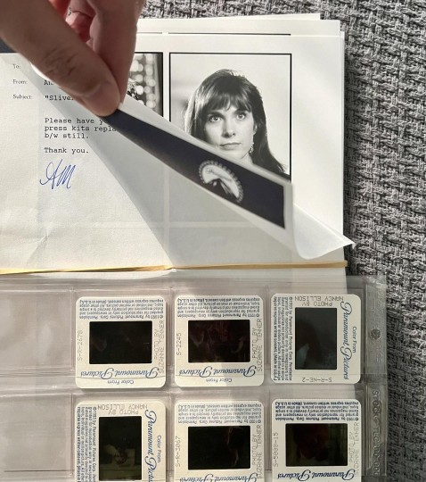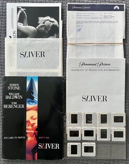 这套派拉蒙影业发行的《偷窥》(1993)媒体套装是我早期的收藏,它很少见,可能全球就此一份。它包括:彩色海报封面文件夹、电影资料册子、8x10 英寸银盐光面黑白相片、一版彩色幻灯片;以上已经很难收齐,但套装里还包括一份派拉蒙内部信件(图3)——这是个很少见也很有意思的补件说明,日期是 1993 年 5 月 13 日,内容是让媒体把之前发的套装中某一张剧照替换成新寄出的这张,牛皮筋里箍着几十张一模一样的黑白照片。对于收藏家来说,这种“未分发的整叠重复剧照”说明它是直接来自宣传部门的原始套件,没有被拆分使用过,完整度极高;而且它应证了以往电影发行与媒体编辑工作的一些专业环节,具有更多的文献价值。我们在纽约的俱乐部有位小姐姐想收藏这几十张照片中的一两张,开价还很大方,我想想后还是没有给她,我觉得这叠重复的照片最好不要拆开,因为这是它的历史状态,当然她也很理解!