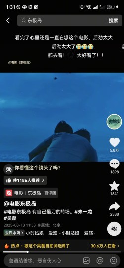 【问题⑥】经过评论区提醒补充,关于阿荡死后的一段剧情,我印象中先是阿赑带着阿荡游回来——拖上岸——回到家,在回家之后两个人躺在床上的戏份里,本来应该是朱一龙非常连贯的独角戏吧,但是似乎穿插了(1)阿赑背着没穿衣服的阿荡上岸,(2)阿赑背着穿了衣服的阿荡站在岸边,(3)阿赑独自站在岸边,的三组镜头。(我关于这里印象不太深了,可能说得有误,也可能把官抖的一些记忆插进来了,欢迎指正。)关于(1)阿赑背着没穿衣服的阿荡回家,这部分为什么要插在阿赑躺床上的回忆里,而不是正常衔接在他把阿荡拖上岸的镜头之后,不理解,这个情节也不是什么能够助推情绪的,没必要滞后剪辑。而关于(2)(3),官抖还专门放了个小视频出来问你看懂了吗……我第一次确实没看懂,因为即便是在IMAX大屏上,经过技术调整的“夜戏”也还是太暗了,根本分不太清楚阿荡到底有没有穿衣服,又都是阿赑情绪里回忆的插叙,与前一个(1)直接混淆了,搞得我不明白为什么同样的戏份插两次。后来明白了,第二次是穿衣服的,暗示的是海葬,但我又不懂了,这是个什么很难拍摄的情节吗?为什么要让观众猜测?为什么不能直接一两个镜头交代一下拍出来?既然导演已经把镜头对准吴磊饰演的“尸体”那么久,既然前面不乏各种血腥奇观,这个把弟弟和一兜子小玩具放海里有什么不能拍清楚的,为什么永远是这样该拍的不拍,情节让人看不明白;不该拍的拍一堆,节奏上拖拖拉拉。