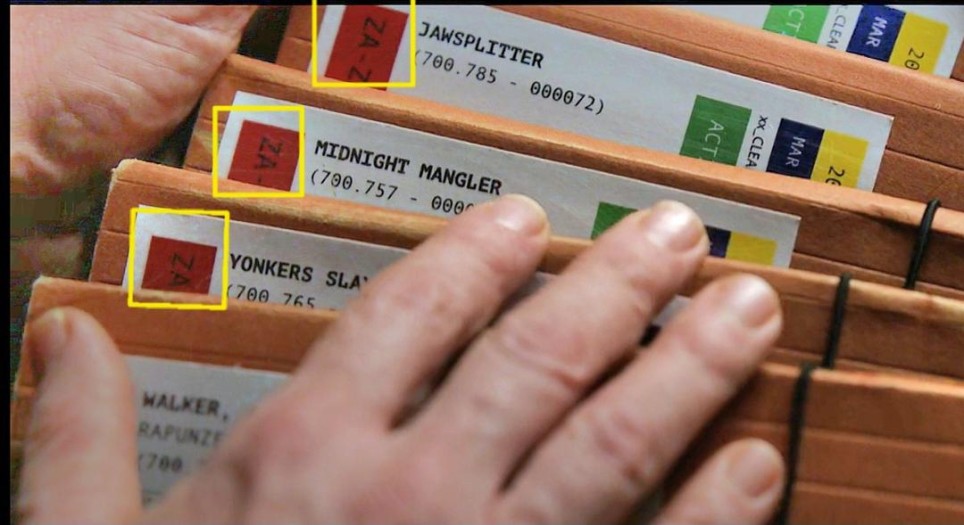 don framt是prater已知的纽约开膛手姓名。 如果纽约开膛手是jonah mitchell,那要么是他在父母、妹妹死后从安全屋逃出,更名改姓去纽约,要么他像dex一样用假名欺骗了prater。 关于三个"farm"标签,由于纽约开膛手已经有五年没有杀人了,只是打电话恐吓受害者家属,我有好几种可怕的猜想。 一是纽约开膛手没有答应加入prater的组织,但是prater一直资助(养育)他,或者,在观察他,等待他回心转意。 二是纽约开膛手已经和prater达成协议,但没有给战利品(所以时间栏是ntd),四处物色受害者饲养,准备搞大屠杀,把最完美的战利品提供给prater。 我更倾向于don framt是个假名,因为编剧不可能让claudette太快破案。从档案标签的磨损程度来看,也许纽约开膛手一直没有答应加入组织,让prater对他有很深的执念,经常拿出来看。