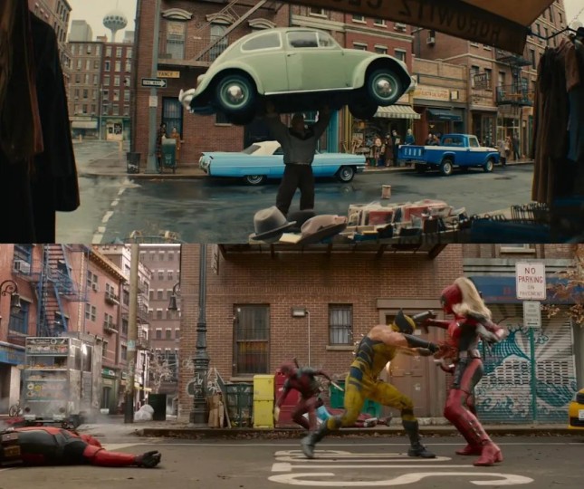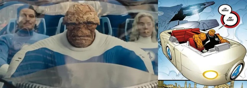 《死侍与金刚狼》也曾出现神奇车,还原了《神奇四侠》第3期被粉丝戏称为"浴缸"的初代设计。