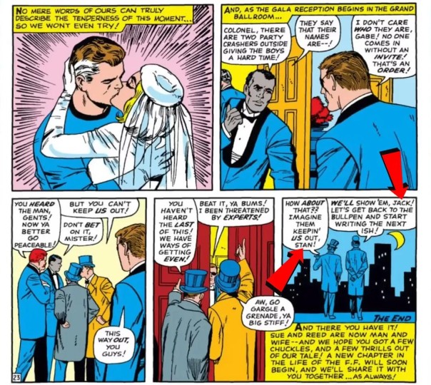 杰克·科比和斯坦·李共同创造了神奇四侠,在《神奇四侠年刊》第3期,斯坦·李和杰克·柯比曾客串被拒之门外的婚礼宾客。