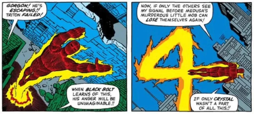当四侠与"巨怪"交战时,画面完美复刻了1961年《神奇四侠》第1期封面构图。