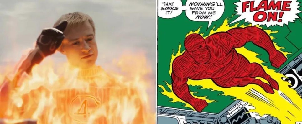 他用火柱拼出"4"字,不仅还原漫画,也是2005版《神奇四侠》霹雳火的招牌招式。
