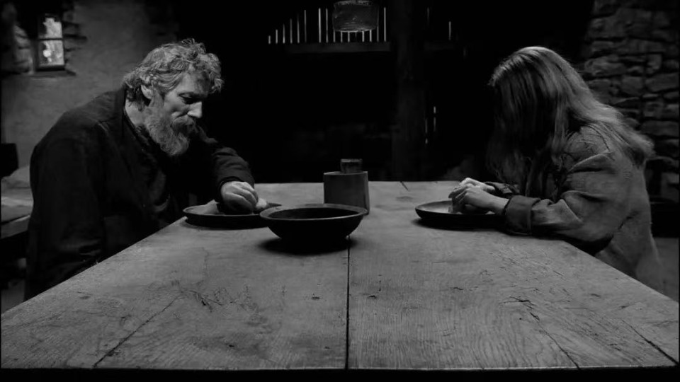 胡塞尔提出的“生活世界”概念,强调那个在前科学、前理论状态下直接被给予我们的世界。而塔尔通过其高度风格化的形式暴力,系统性地抽空了影片中所有的生活质感。影片中那对父女的日常生活被简化为一系列机械的重复动作:起床、穿衣、眺望窗外、打水、吃土豆、睡觉。这些动作并非为了展现生活本身的丰富肌理,而是为了演示一个关于“存在虚无”的既定命题。这种对生活的抽象化处理,使得人物失去了具体的历史性与社会性,沦为演示哲学概念的傀儡。父亲和女儿之间的关系缺乏任何真实的情感流动,他们的沉默不是充满潜台词的生活沉默,而是哲学概念的真空。那个与世隔绝的农舍,不是某个具体的地理空间,而是一个被精心设计的形而上学实验室。