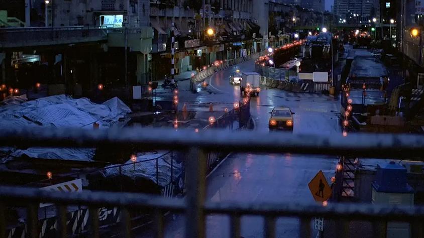 是台北,一座四处蔓延的城市。它那眩目的总体与失衡的比例,原是为了促进经济流通,却最终在人与人之间制造出距离、喧嚣与冷漠。通过对广角镜头的运用,蔡氏使画面视野展开,透视被拉长,人物则沉没于多形的空间之中。借此,他同时描绘了台北的包罗万象与分割阻绝,它的开放与路至尽头的幽闭。在《青少年哪吒》中,城市在电光的印迹下流动:交通信号闪烁,巨大的彩色招牌争夺着建筑的外立面,年轻人一有机会便钻入电子游戏厅中(哪怕为此必须暂时抛下女友)。在蔡氏笔下,台北俨然是一座“影幕之城”(ville-image):它是闪烁的广告幻象,背后是破旧的公寓(在片首,小康用圆规尖刺死一只蟑螂)与陈腐的旅馆房间。面对这吞噬一切的都市性,蔡氏空间的另一极是公寓,那是从城市群体中切割出来的狭小个人分区,一个自我封闭与消耗的场所。《爱情万岁》则不断在角色的职业活动与那间空荡的复式公寓之间来回摆荡。这是一个天才的构思:每个人都各自来到此处稍作喘息,仿佛有一个无人占据的画外空间,他们在其中得以短暂逃离自身的存在(哪怕只是泡个澡、发发呆、做爱,或割腕)。《河流》同样重现了这种二分结构:一方面是潜藏着污水沟和垃圾场的城市,小康泡在一条发腐的臭水沟中,莫名染上了颈病;另一方面是一个公寓,里面住着一个窒息的,支离破碎的家庭,小康被夹在不和的父母之间,他的痛苦与更深层的苦闷共鸣,融成了一段实在难以悦纳的青春。至此,影片呈现出了电影史上最震颤人心的“生之痛苦”形象之一:在李康生的病理戏仿游戏中,他自制不住地将头弓向肩后,全力与身体的扭曲角力,从而创造出一种致幻后的形体姿态,沿着怪异性的崖边行进。